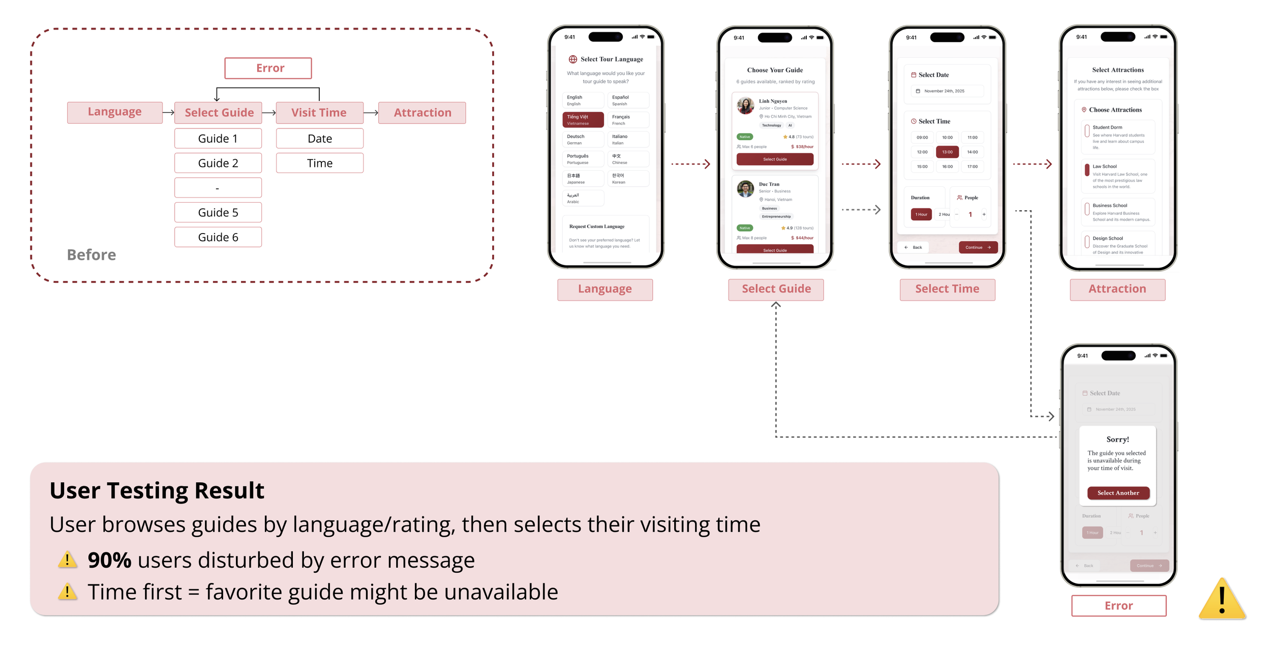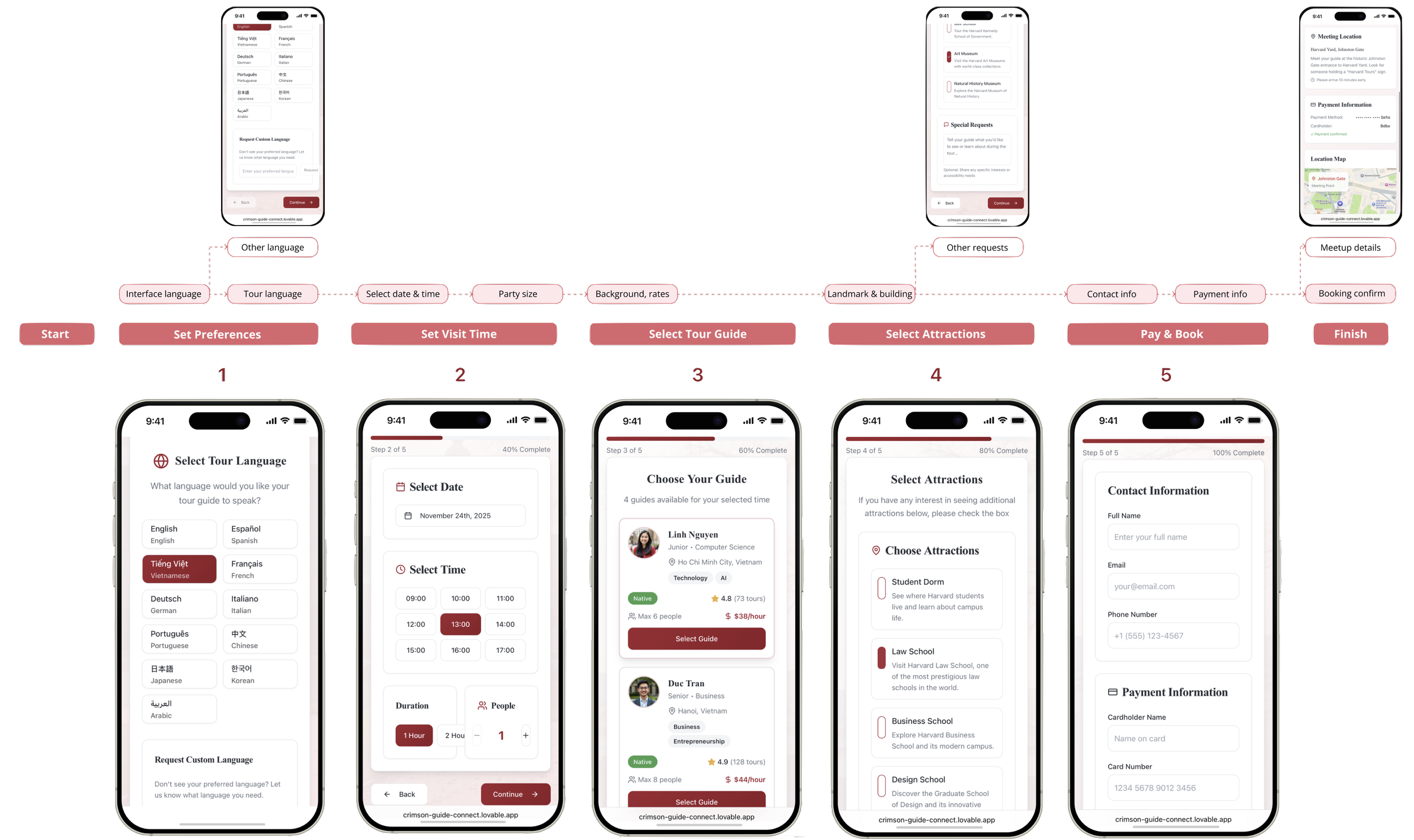 I designed a mobile-first booking platform connecting international retirees with verified Harvard student guides, breaking language barriers for campus visits.