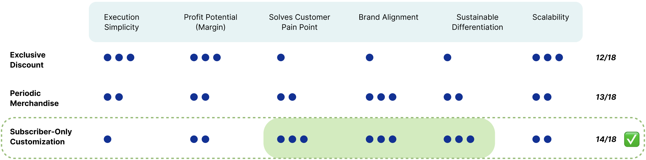 Adding exclusive perks to online subscription will convince users of its value, thus securing loyalty. We explored 3 options and landed on product customization.