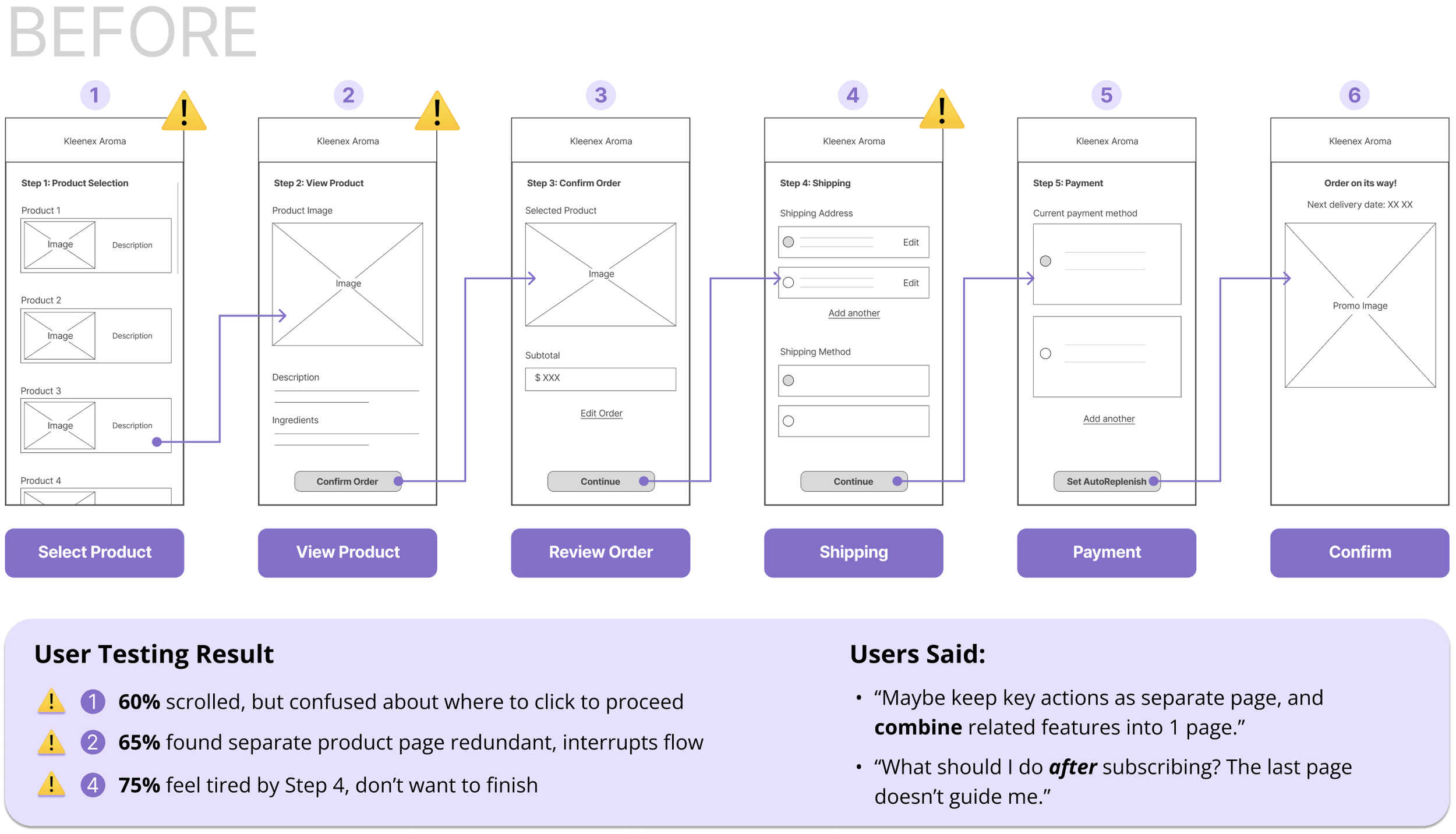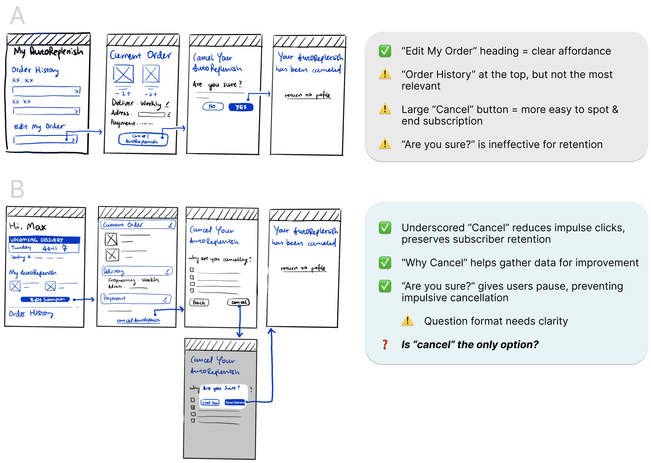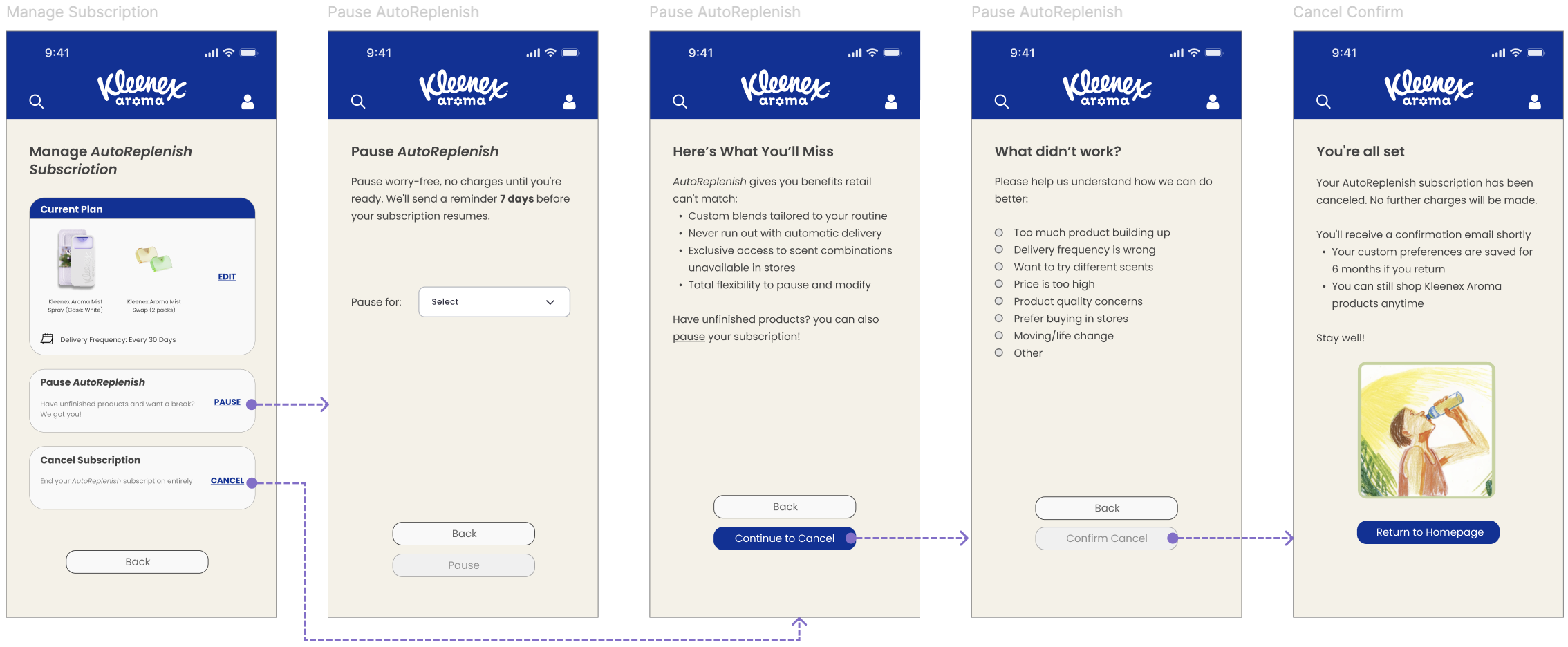 Under this proposal, I designed a web-based, 3-step AutoReplenish subscription system to drive recurring revenue and customer loyalty, reducing subscription anxiety while encouraging continuous purchases.